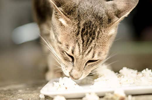 It's safe for cats to nibble on some cooked rice now. You may also see rice in a number of cat foods since it can contribute to a nutritionally balanced cat food. Here's more on rice in your cat's meal plan.