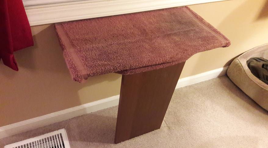 Why not make your own cat perch? Although you can buy a perch, it's more fun and fulfilling to customize one! This particular DIY cat perch is simple, yet it holds more weight than other designs. It's attached to the wall and has a leg on the floor for extra support, so it won't tip over, unlike a free-standing or under-supported perch. Importantly, the design allows for a sturdy wall-mounted perch that can be permanent or temporary, meaning you don't have to drill holes in your wall.