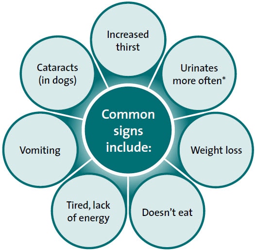 The signs of diabetes are difficult to recognize because they are similar to those of other disorders like kidney disease. Your veterinarian may also need to perform tests to ensure an accurate diagnosis. If your dog appears weak or thirsty, frequently urinates, experiences rapid weight loss, is depressed, or has abdominal pain, he could be diabetic. If you notice these signs, please contact your veterinarian.