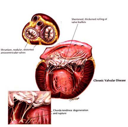 Chronic Valvular Disease: A leaking heart valve reduces the quantity of blood that can be pumped around the body.
