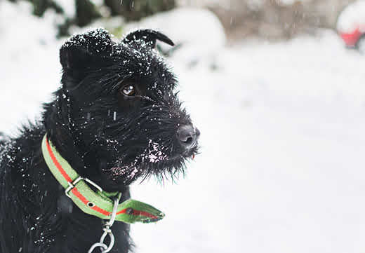 In situations where staying inside is not possible, helping older dogs in snow requires extreme caution. Consider such measures as dressing your dog in a warm outer layer, like a jacket or winter coat. If you can train your dog to get comfortable wearing booties on their feet in colder months, do so. While outside, avoid walking your dog over risky areas such as black ice, thin ice and metal manhole covers. And keep your eyes peeled for the telltale signs of hypothermia: intense shivering, lethargy and frostbite. Check for frostbite by looking for bluish or white coloring on affected areas of skin. Earflaps and the tips of your dog's tail are especially vulnerable to frostbite, so when you're helping older dogs in snow, pay special attention to these areas.
